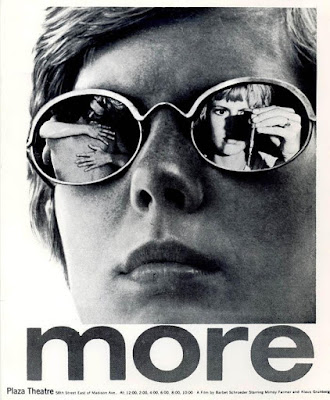 De cómo las utopías y nuestros mejores latidos se van al mínimo desliz o error al carajo y engendran de la noche a la mañana monstruos, de cómo Pink Floyd, pura regresión, sigue erizándome aún hoy, después de tantos años, como un panoramix la piel, del sueño roto de los hippies y los beatniks e Ibiza, de cómo Babilonia aliena desde que el mundo es mundo a los mejores cerebros de su generación y de cómo me hiela todo ello, por lo que me toca y atañe, la sangre en las venas, nos habla, en clave psicodélica y metafórica, como un mensaje negacionista en una botella rota, More (1969), de Barbet Schoeder, sangre para Drácula, carne para Frankenstein: tremenda, maravillosa y real como la vida perra: que ustedes la sufran o disfruten, según qué punto de encaje: