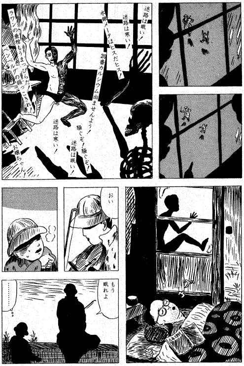 Suzuki es, si cabe, más oscuro y tenebroso que Abe, Hayashi o Tsurita. Sus historias están sobrevoladas por una idea de fatalidad que conecta a la existencia con la muerte y los espíritus que la habitan (transfigurados muchas veces en forma de recuerdos, de presagios o sueños en otras), pero también con los deseos incumplidos o la imposibilidad de aprehender la realidad. Lo vemos en el sobrecogedor "Tale of Remembrance", que, como se anuncia en su título, se acerca a la muerte de la hermana desde el plano dolorido de la memoria y la evocación onírica, fantasmal, del ser querido; o en "Crystal Thoughts", en la que el niño proyecta fallidamente sobre un objeto, un aparato de radio, un deseo de trascendencia que le explique la realidad compleja que le rodea; incomprensión que se repite en "Mountain Town", en la que los universos del niño y el adulto recorren vías divergentes que los separan dolorosamente.