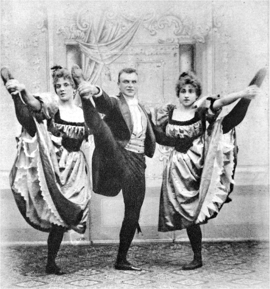 … “El cancán apareció por primera vez en los salones de baile de la clase trabajadora del barrio parisino de Montparnasse alrededor de 1830. Era una versión más animada del galope, un baile rápido en un compás de 2/4, el cual solía ser la figura final en la cuadrilla –en la que participaban tanto hombres como mujeres—. Por lo tanto, el cancán era originalmente una danza para parejas, las cuales realizaban patadas altas y otros gestos con los brazos y las entrepiernas.