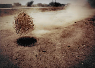 Osea y para resumir: hacerte yerbajo y rodar, desprendido de la raíz por el viento, atrapando en tu interior plumas de cuervos y buitres, ratones diminutos, mudas de lagartos, cactus y alacranes, mientras Curro Savoy silba entre buenos, feos y malos y tú prosigues tu rodaje estepicursor, tintin-tiruriruriruriiii... soltando semillitas entre balas perdidas y botellas vacías.